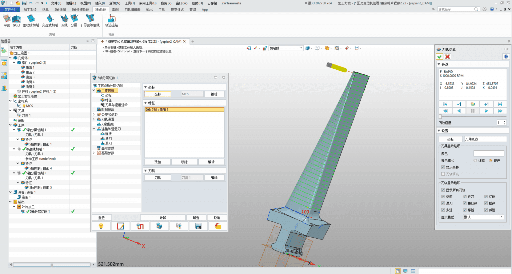 - 高精度軌跡算法:基于中望3D平臺(tái)開(kāi)發(fā),能夠利用中望3D的各類2軸到5軸的軌跡算法,使機(jī)器人在激光加工過(guò)程中擁有類似CAM軟件的精確軌跡算法,可將激光束準(zhǔn)確地聚焦在加工部位,實(shí)現(xiàn)高精度的激光切割、焊接、雕刻等工藝,確保加工質(zhì)量和一致性。