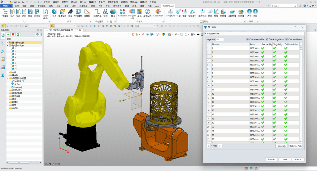 - 虛擬調(diào)試功能:具備機(jī)電建模模塊,可進(jìn)行產(chǎn)線的建模設(shè)計(jì)和機(jī)器人的虛擬調(diào)試,在實(shí)際生產(chǎn)前通過(guò)虛擬環(huán)境模擬激光加工過(guò)程,提前發(fā)現(xiàn)并解決可能出現(xiàn)的問(wèn)題,如機(jī)器人運(yùn)動(dòng)碰撞干涉、檢查機(jī)器人奇異性、可達(dá)性和碰撞性以及激光路徑錯(cuò)誤等,減少實(shí)際調(diào)試中的錯(cuò)誤和風(fēng)險(xiǎn),提高生產(chǎn)效率和安全性。